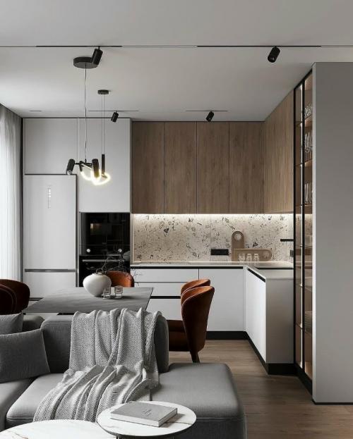 29. Потрясающий интерьер кухни - гостиной общей площадью 135 кв.