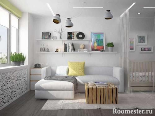 - Дизайн 1 комнатной квартир. Организация зон для двух взрослых и маленького ребенка