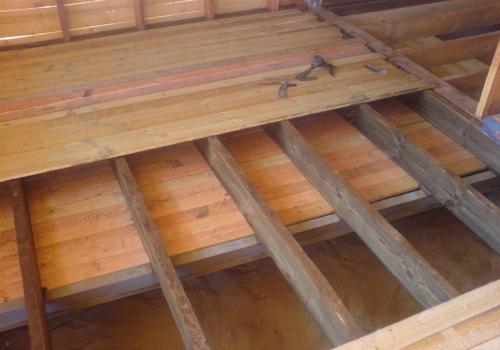 В деревянных домах межэтажные несущие перекрытия чаще всего монтируются на массивных лагах из толстого бруса или бревна . Такая технология отчасти напоминает монтаж полов, где снизу подшивается доска 300 на 25 мм, с той лишь разницей, что для межэтажных перекрытий берется строганная доска. Это вызвано тем, что нижний настил здесь одновременно является потолком первого этажа и соответственно должен выглядеть достойно.