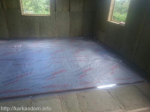 После того, как перекрытие этажа утеплено и произведена пароизоляция, с обязательной тщательной герметизацией швов, для укладки плит Квик Дек необходимо сделать обрешетку. Обрешетка делается из доски дюймовки, шаг обрешетки 30 см. Такой шаг необходимо соблюдать исходя из размеров материала и во избежание батутности пола. Обрешетка укладывается поперек лаг, так как шаг лаг обычно более 30 см, и крепится гвоздями к лагам.
