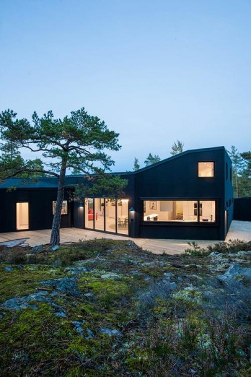 Вилла Bl? b? r была спроектирована бюро pS Arkitektur в 2012 году и построена недалеко от Стокгольма в Швеции. Окруженная пышной растительностью, она занимает площадь 170 кв. Метров и предназначена для постоянного проживания семьи наедине с природой. В работе над проектом архитекторам необходимо было учитывать наклонный характер местности, поэтому дом получился вытянутым, узким и возвышающимся на бетонных колоннах над огромными валунами.