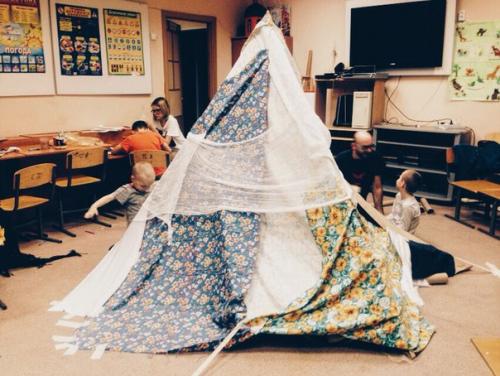 Иногда в жизни всё идёт не так как запланировал и не так как ожидал. И в сосновке такое тоже бывает. Поэтому на этом занятие, вместо сьёмок мультика по скороговорке про дервиша, шалаш и инжир, мы просто строили шалаш, и делали дизайн его интерьера. Получилось очень красиво. Дети были счастливы. И мы тоже . Иногда надо расслабится и искать другие, возможные пути?