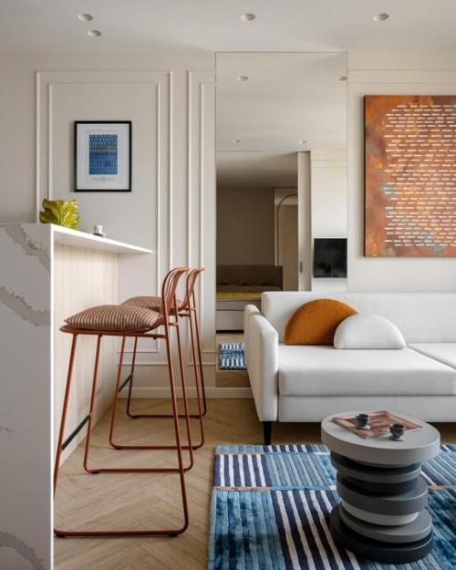4. Интерьер двухкомнатной квартиры без гостиной с французским настроением.