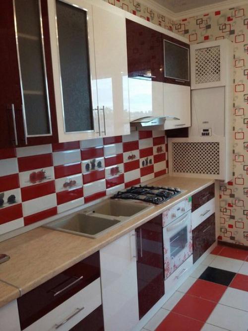 Габариты 4, 34 м. фасад изготовлен из современного акрила, а столешница цвета калакат.