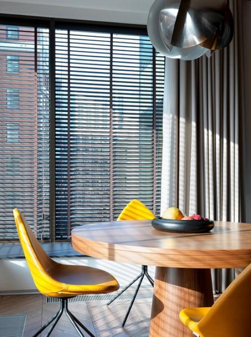 Кухня подчиняется законам строгой геометрии: здесь нет ничего лишнего. Забавно, но гарнитур оснащен по последнему слову техники - дизайнер предусмотрела все, о чем только могла бы мечтать современная хозяйка. А в реальной жизни заказчик ничем вышеперечисленным ни разу не воспользовался.