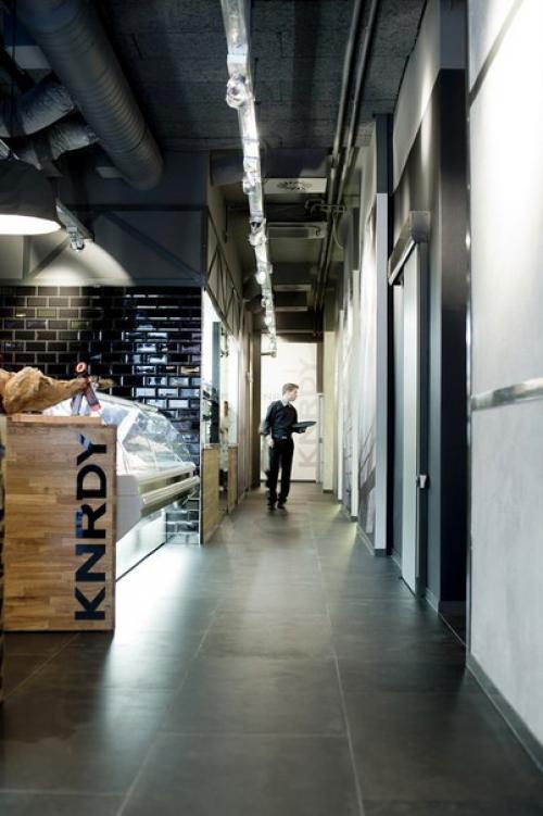 Над оформлением ресторана Knrdy работала студия дизайна Suto Interior Architects. Заведение занимает помещение площадью 250 кв. Метров с выходом во внутренний двор и расположено в старом здании, построенном более века назад в Будапеште, Венгрия. Главный зал рассчитан на 40 гостей и оформлен в индустриальном стиле, а рядом спроектирована барная зона. Открытая кухня дает возможностям наблюдать за процессом приготовления блюд.