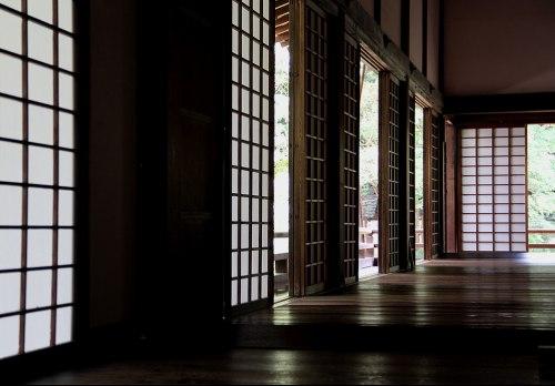 Заклеенные бумагой перегородки не отделяли человека от окружающей среды, не замыкали его в искусственную скорлупу здания, а оставляли обитателя дома в полном единении с природой. При хорошей погоде или после окончания сезона дождей, когда нужно проветривать домашний скарб, панели сдвигаются вбок или при необходимости совсем убираются. Тогда дом распахивается наружу, и его интерьер становится частью окружающего пространства. А в плохую, холодную погоду сёдзи устанавливаются на место, создавая внутри уютный микромир.