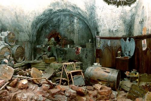 "Выставка начинается с подвальной части помещения одного из ресторанов в Кёнигсберге. Мы видим, что подвал был затоплен. Наши художники воду сымитировали. Вокруг автоматы, пулемётные ленты. Здесь основной нашей задачей было соединить две части композиции (старую и новую), чтобы можно было вести экскурсии, показывать общий ход штурма наступления", - рассказывает поштаренко.