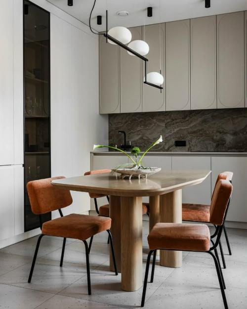 Проект реализовала студия Mistovia, сделав ставку на цвет, фактуру и выразительную композицию. Главный акцент - плиточный остров - скульптура, который служит одновременно рабочей поверхностью и фоном для съёмок. Пространство получилось динамичным, эмоциональным и очень "Живым" - полностью в характере владельца.
