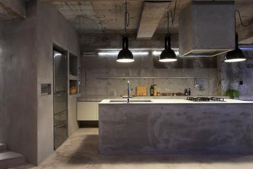 Что касается отделки, то она представлена исключительно бетонными поверхностями включая стены, потолки и полы. Такое необычное решение также было использованы в соответствии с пожеланиями заказчиков. Молодые и креативные, они любят стекло, бетон и железо, используемые для создания современного пространства в стиле лофта.