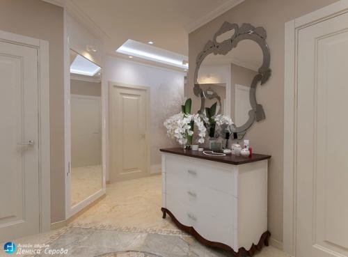 В спальне и детской мы балконы задействовали. Достаточно большой холл обусловлен планировкой квартиры и сильно сужать его не хотелось.