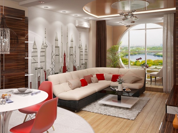 сити, мегаполис — это разновидности современного стиля. Здесь можно использовать яркие цвета, контрастные решения, навесные либо натяжные потолки со светодиодной подсветкой. В качестве отделки хорошо подойдет дерево, пластик, декоративная штукатурка и камень.
