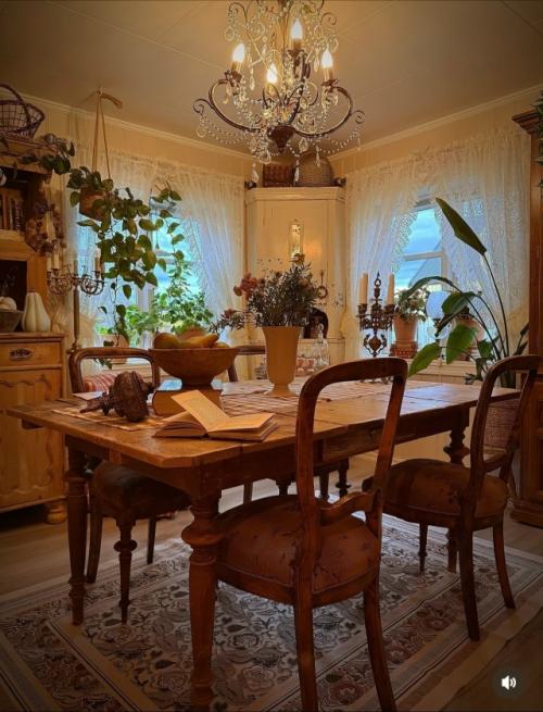 33. Круглый стол в интерьере кажется символом уюта: за ним удобно собираться всей семьёй, никто не сидит "в Углу", и разговор идёт проще.