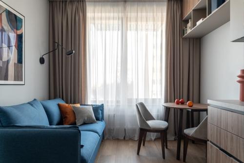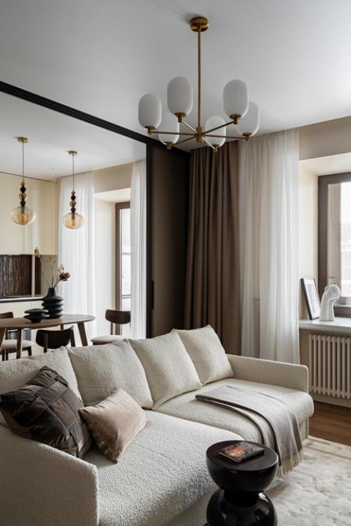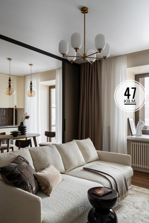 35. Эта двухкомнатная квартира оформлена в современном стиле с акцентом на минимализм и уют.