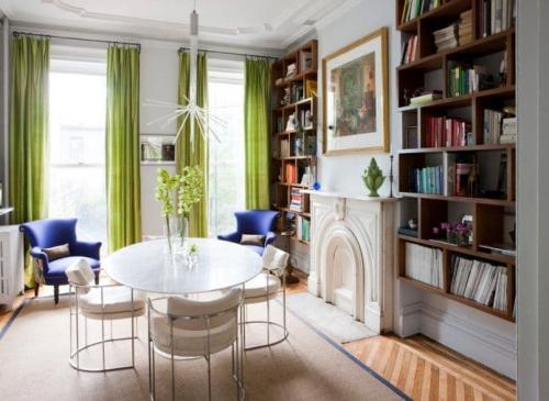 Это довольно смелое и необычное решение, позволяющее хозяевам поэкспериментировать с видом обустраиваемой комнаты. Выигрышнее всего будет смотреться помещение в белых тонах, которое украсят желтые, зеленые, синие и даже красные полотна.Как выбрать цвет штор, чтобы он гармонировал с цветовой гаммой комнаты