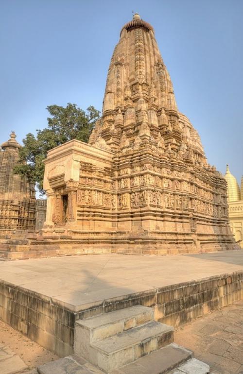 Мадхья-прадеш. Сохранилось около 20 храмов, крупнейший из которых кандарья - махадева. Крупный комплекс храмов в североиндийском стиле нагара (основные три элементы стиля: квадратное святилище санктум, один или два ряда трансептов и увенчаны криволинейным конусом шикхарой. Северный стиль храмовой архитектуры и скульптуры здесь своего пика достигает. Все строения были возведены в IX - XII веках нашей эры. Появление храмов в кхаджурахо связано с возрождением индуизма в этот период истории Индии