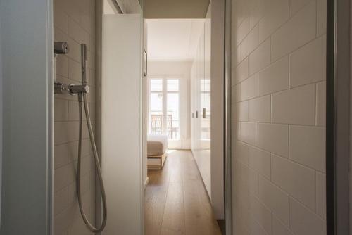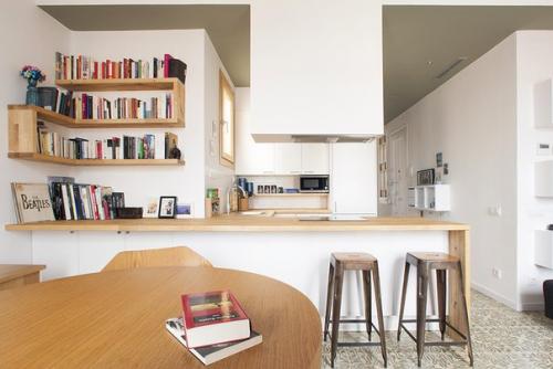 Студия Nook Architects работала над дизайном интерьера апартаментов Casa Jes, расположенных в здании прошлого столетия в Барселоне, Испания. Оригинальная планировка со строгим выделением нескольких комнат схожего размера не была функциональной. Архитекторы адаптировали ее к требованиям и образу жизни владельца, сделав кухню частью гостиной, объединив главную спальню и гардероб, а также оборудовав дополнительную комнату в качестве рабочей студии и гостевой спальни одновременно
