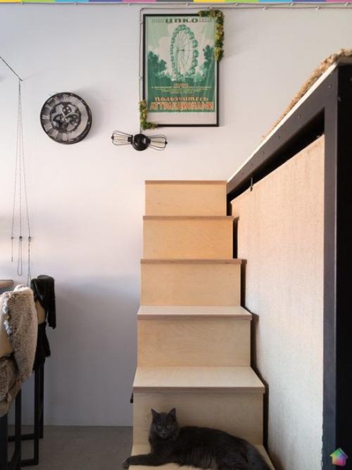 Маленький лофт площадью всего 27 квадратных метров имеет одно заметное преимущество - это четырёхметровые потолки. Здесь предстояло организовать кухню, гардероб, санузел и спальню. Дарья занимается дизайном интерьеров, поэтому сама работала над планировкой и интерьером лофта.