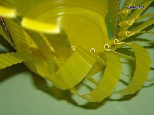 Мы разрезаем стаканчик на полоски, не доходя немного до дна.