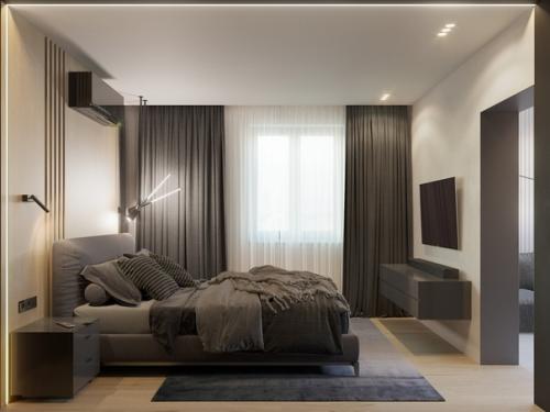 Спальня в монохромной цветовой гамме.