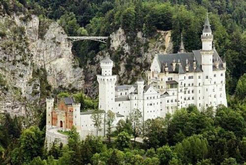 Schloss Neuschwanstein n? y'? van? Tain, адаптированный перевод: "Новый Лебединый Камень (Утёс)") - романтический замок баварского короля Людвига II, близь городка фюссен и замка хоэншвангау в юго-западной Баварии, недалеко от австрийской границы. Замок выложен из кирпича, облицован белым известняком из находящегося по соседству карьера. Песчаник для портала и эркера был привезён из нюртингена земли Вюртемберг
