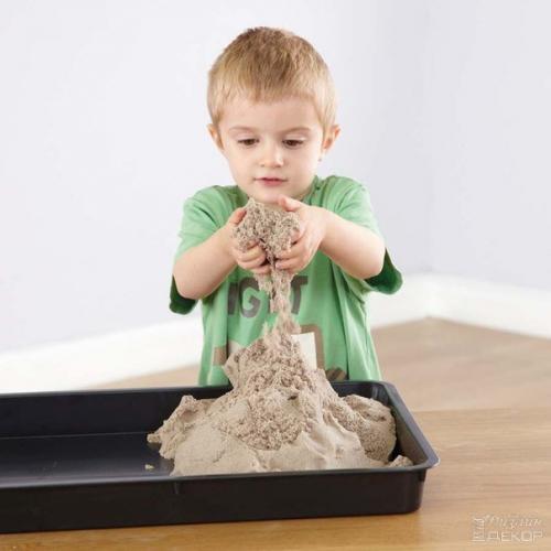 На вид это обычный песок, но в тоже время он отлично держит форму при лепке, почти как соленое тесто. Его можно, конечно, и купить, но стоит он довольно дорого и встречается в магазинах редко. Самим же его приготовить быстро и дешево. Вам потребуются: