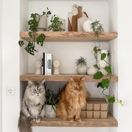 - и как не влюбиться в пушистых котиков, спокойно растянувшихся на мягких скандинавских диванах и на деревянных полках с растениями?