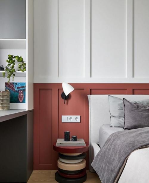 "Поскольку здесь не нужно было согласовывать свои идеи ни с кем, кроме себя самой, удалось реализовать много того, что клиенты считали слишком смелым - яркая оформление стен, панели из массива, часть стен в ванной без плитки.