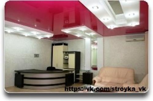 Кроме того очень хорошо такая поверхность смотрится в потолках с несколькими уровнями, особенно если вы будет смонтирована дополнительная подсветка. В таком варианте допускается использование темных тонов, вплоть до темно-синих и черных.
