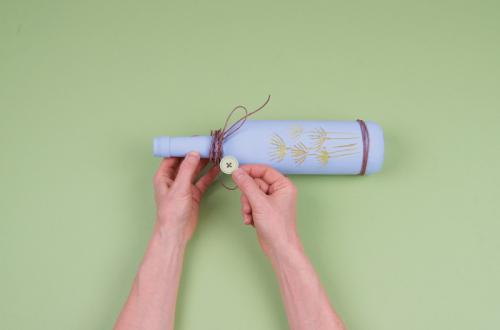 - Обмотайте бутылку веревкой, лентой или тканью для создания оригинального дизайна.