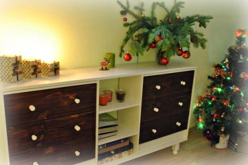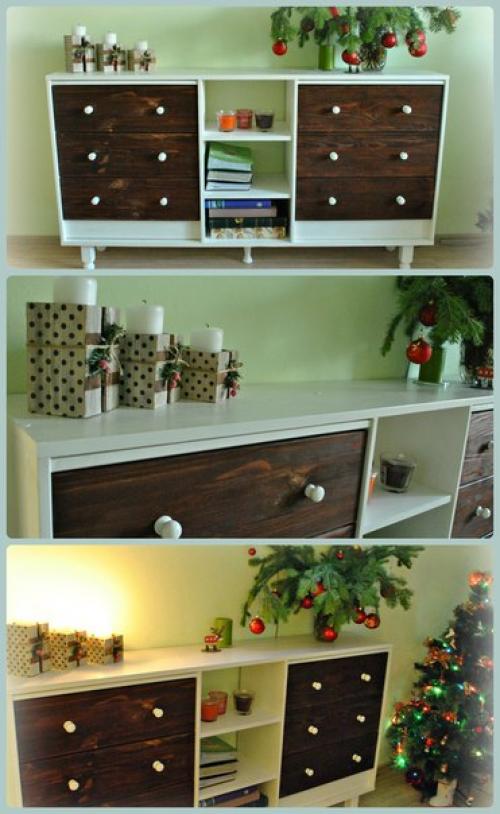 Для основы послужил комод раст (икеа), вернее два комода, три мебельных щита, балясины, мое жгучее желание и умелые руки мужа! Я страшно довольна. Очень сложно сделать красивые фото в интерьере, но поверьте в целом в комнате он смотрится очень органично. И самое главное успели сделать до нового года и все праздники я любовалась своей работой. p. s. последнее фото это первоначальный вид комодика (если вдруг кто не знает.