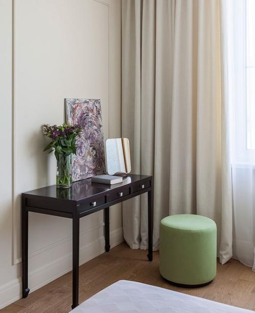 Московскую квартиру 83 кв. Метра дизайнер Кристина Изотова для молодой девушки оформила. Пожелания заказчицы были предельно просты: стильное спокойное пространство, изолированная спальня, кухня - столовая, гостиная с дополнительным спальным местом.