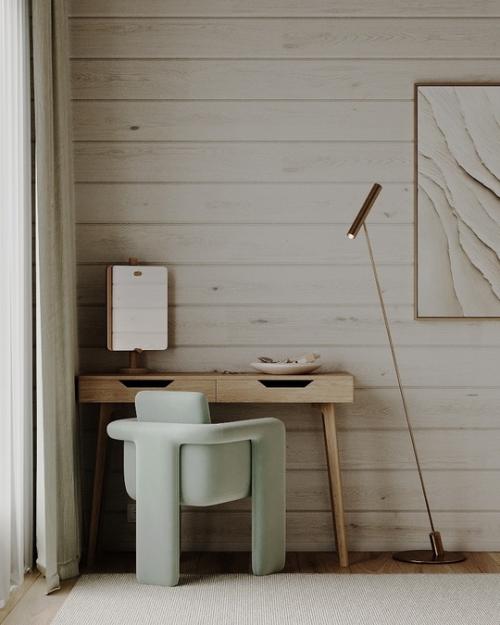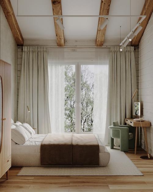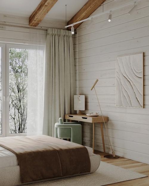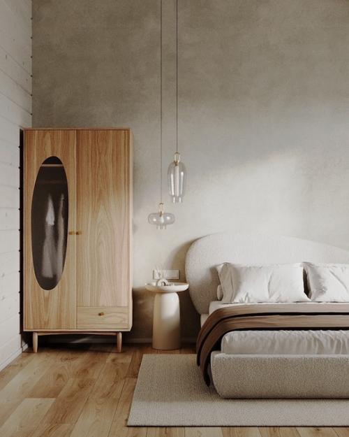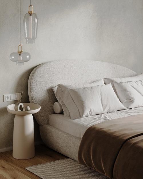 Я скандинавский стиль с элементами джапанди использовала. Концепция на природных формах в деталях интерьера базируется. Никакой резкости, все чтобы создать идеальное помещение для сна и отдыха.